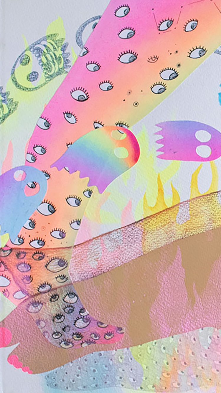 Gouache, watercolor, colored pencil, marker, graphite, and collage on paper